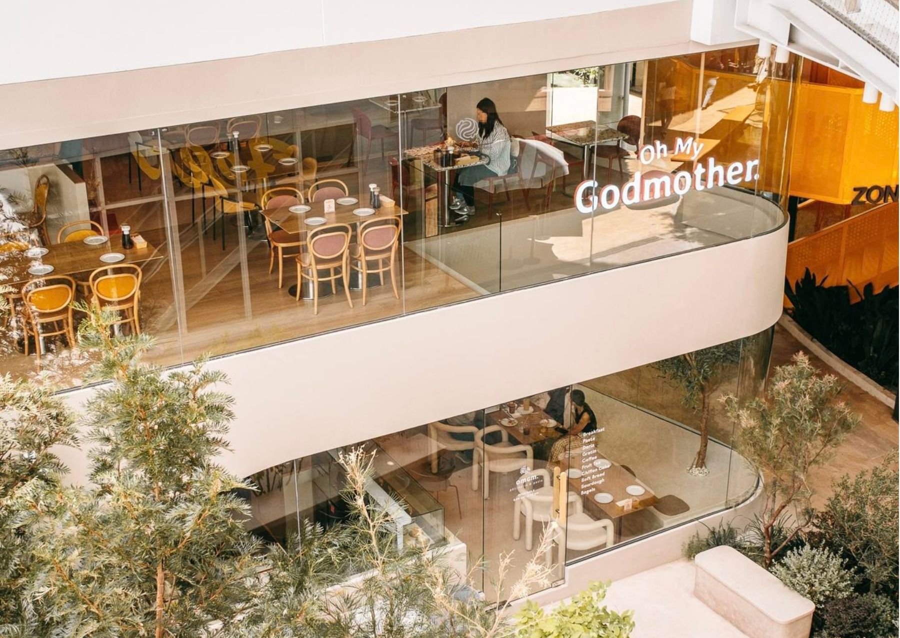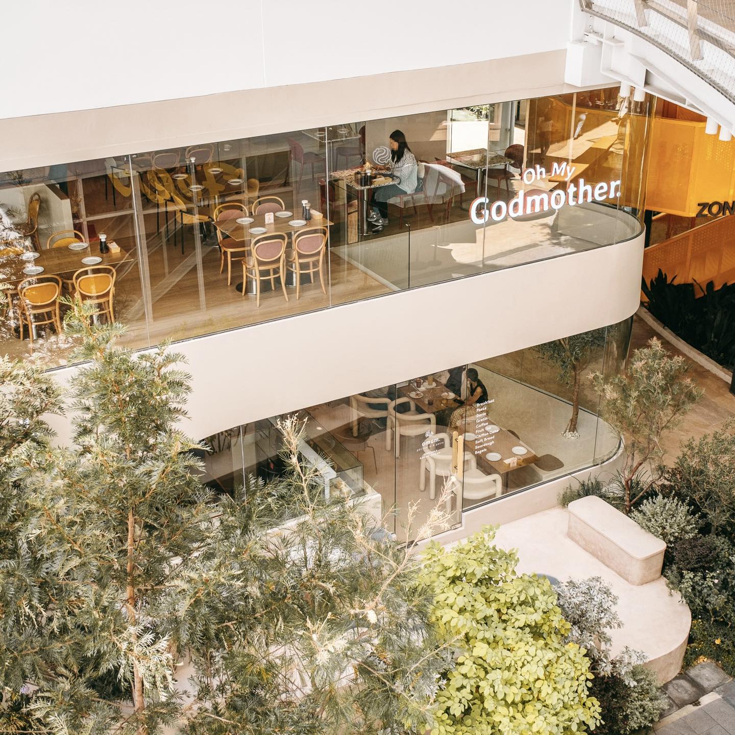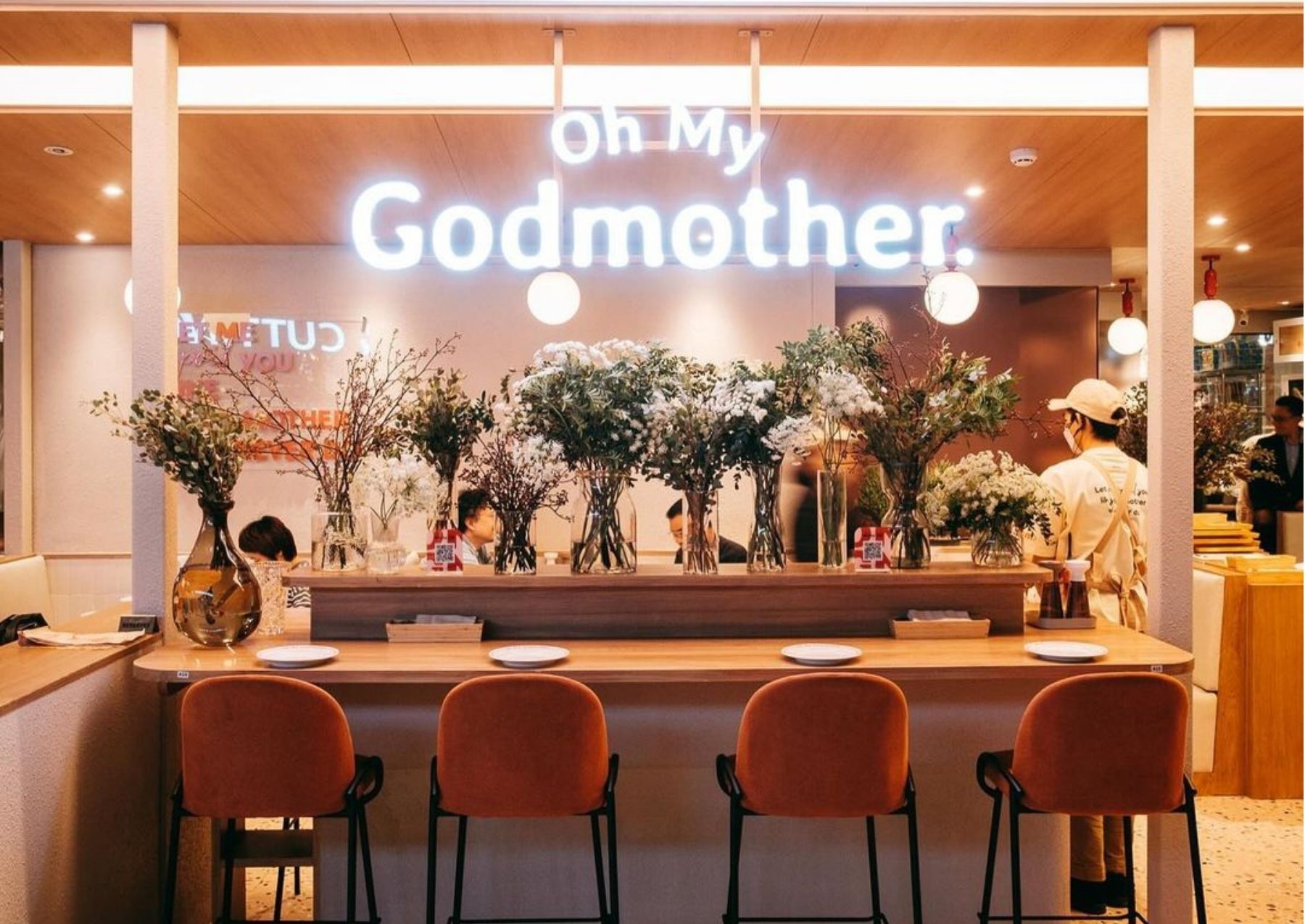 Tọa lạc tại Marché Thonglor, Bangkok - một khu phức hợp với tổng diện tích 60.000 mét vuông. Oh My Godmother mang đến không gian thư giãn với ánh sáng tự nhiên, lý tưởng cho bữa sáng, trưa hoặc tối.